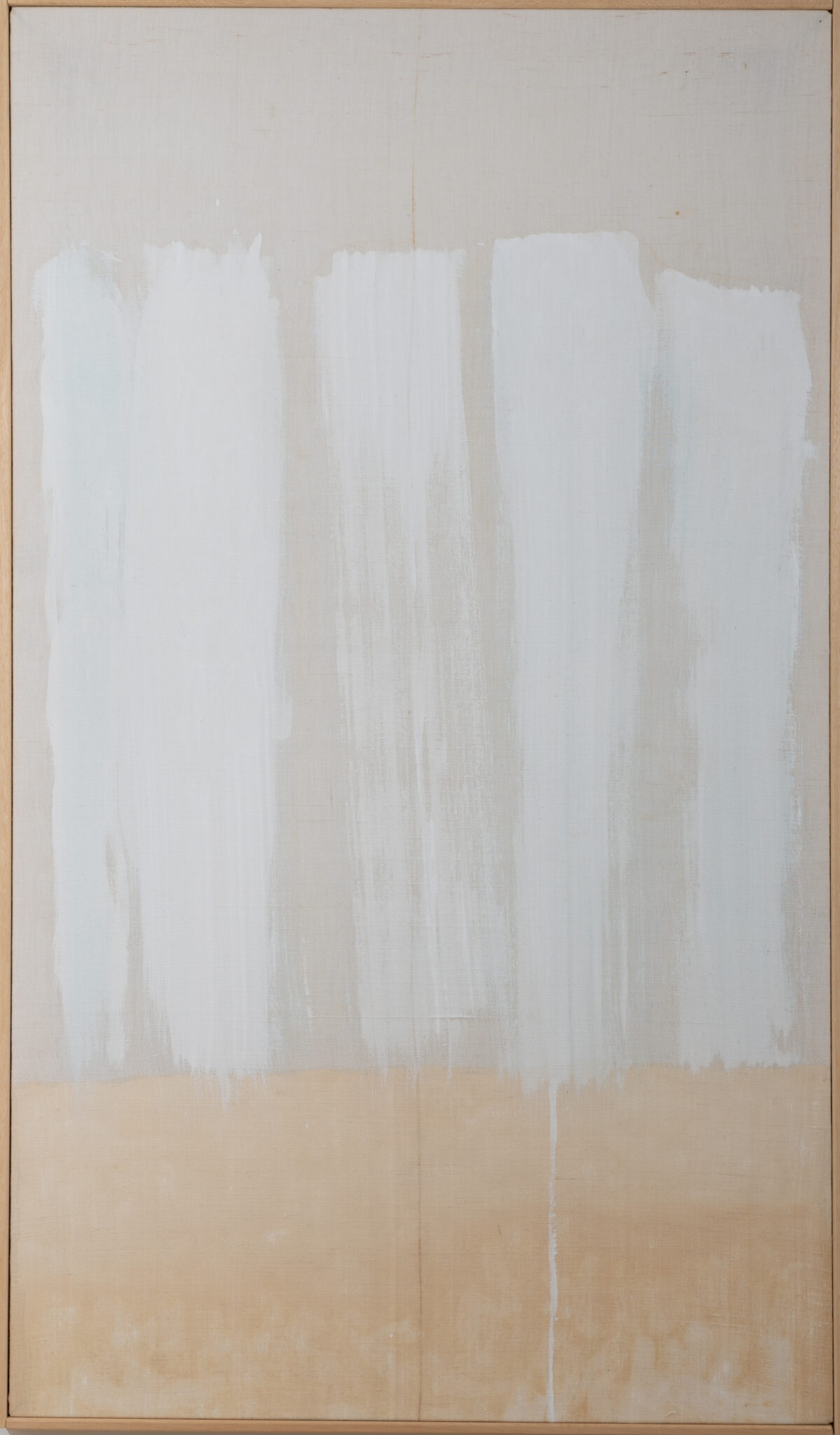 Aphonia ii fa parte della serie Aphonie, iniziata nel 2024 e tuttora in essere. Quattro lavori di dimensioni 70x120cm e tre lavori di dimensioni 164x201cm (l'ultimo dei quali portato a termine nel Maggio 2025). La serie è frutto di una ricerca per sottrazione, nei materiali quanto nel pensiero e nello spirito. Talvolta è presente il solo gesso, come nell'opera presentata, talvolta l'olio steso direttamente sulla tela; diversi medium, la punta d'argento. Elementi di una sintassi lirica, aniconica in cui confluiscono il tempo ciclico della ripetizione dell'atto segnico, uguale a se stesso solo nel rito di ripetersi; il Vuoto della mistica orientale; il deserto degli apotegmi dei Padri della Chiesa; la ricerca sinestetica tra arte e suono; la resistenza alla prigionia, privatissima quanto collettiva.