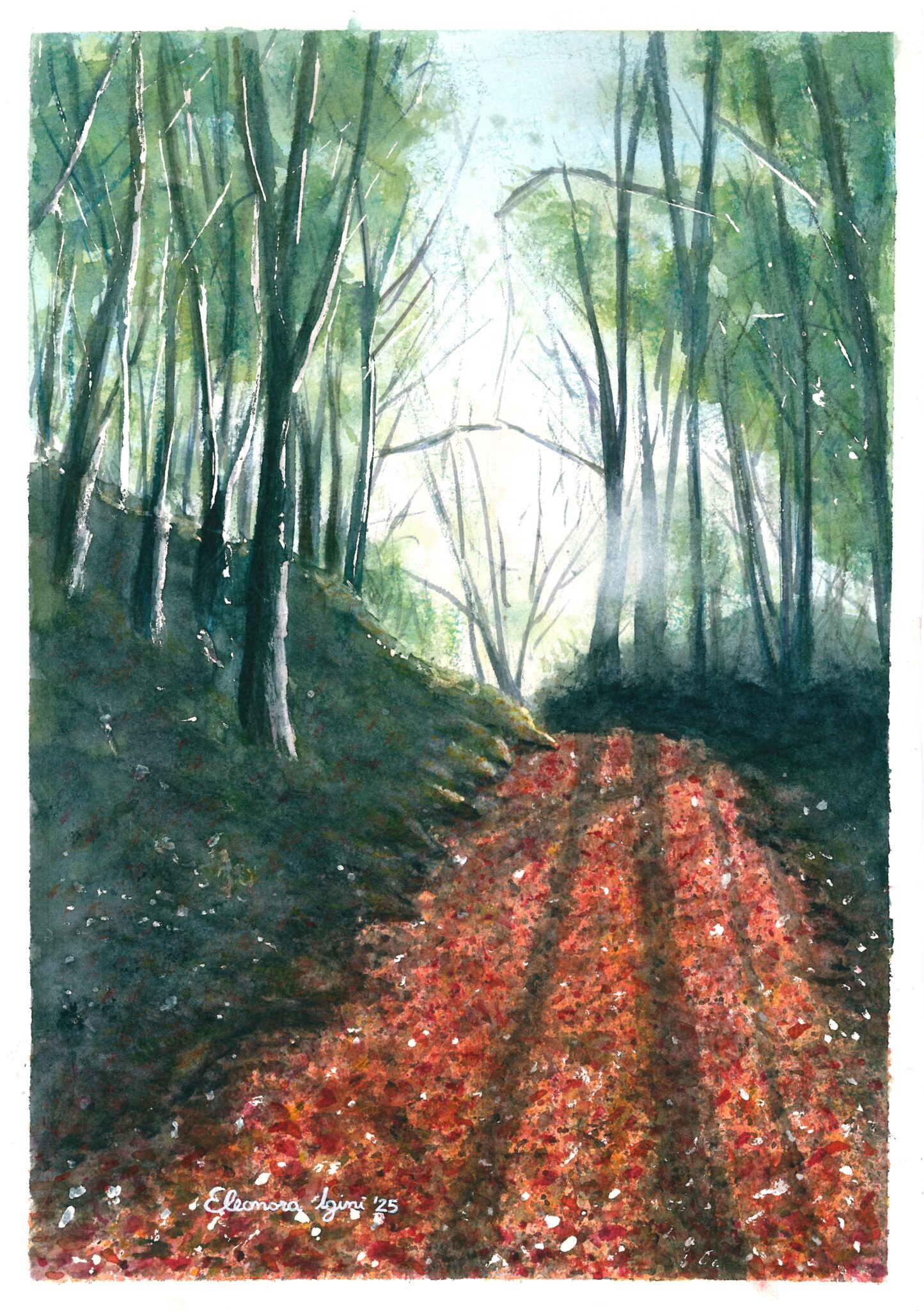 L'acquerello cattura un angolo suggestivo di Bondone, uno dei borghi gioiello del Trentino incastonato nei pressi del lago d'Idro, avvolto nella magica atmosfera del periodo natalizio. La luce calda e radente del tramonto si distende sulle antiche mura in pietra e sulla pavimentazione irregolare dei san pietrini, mentre un ultimo raggio di sole dorato accende un accogliente portone ornato da festoni natalizi. La scena, intrisa di una quiete serena e di un'eleganza senza tempo, evoca la bellezza autentica e l'incanto discreto di questo borgo italiano durante le festività.