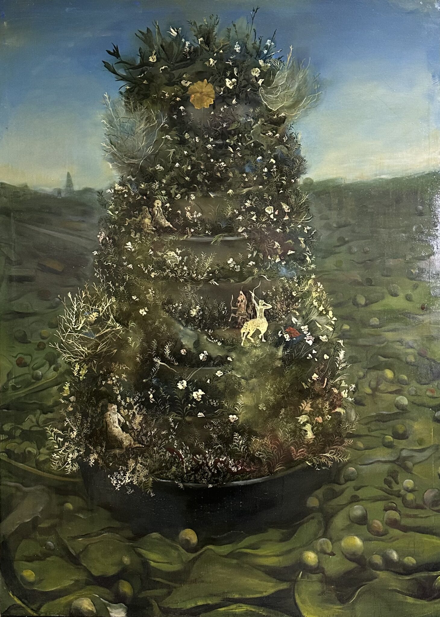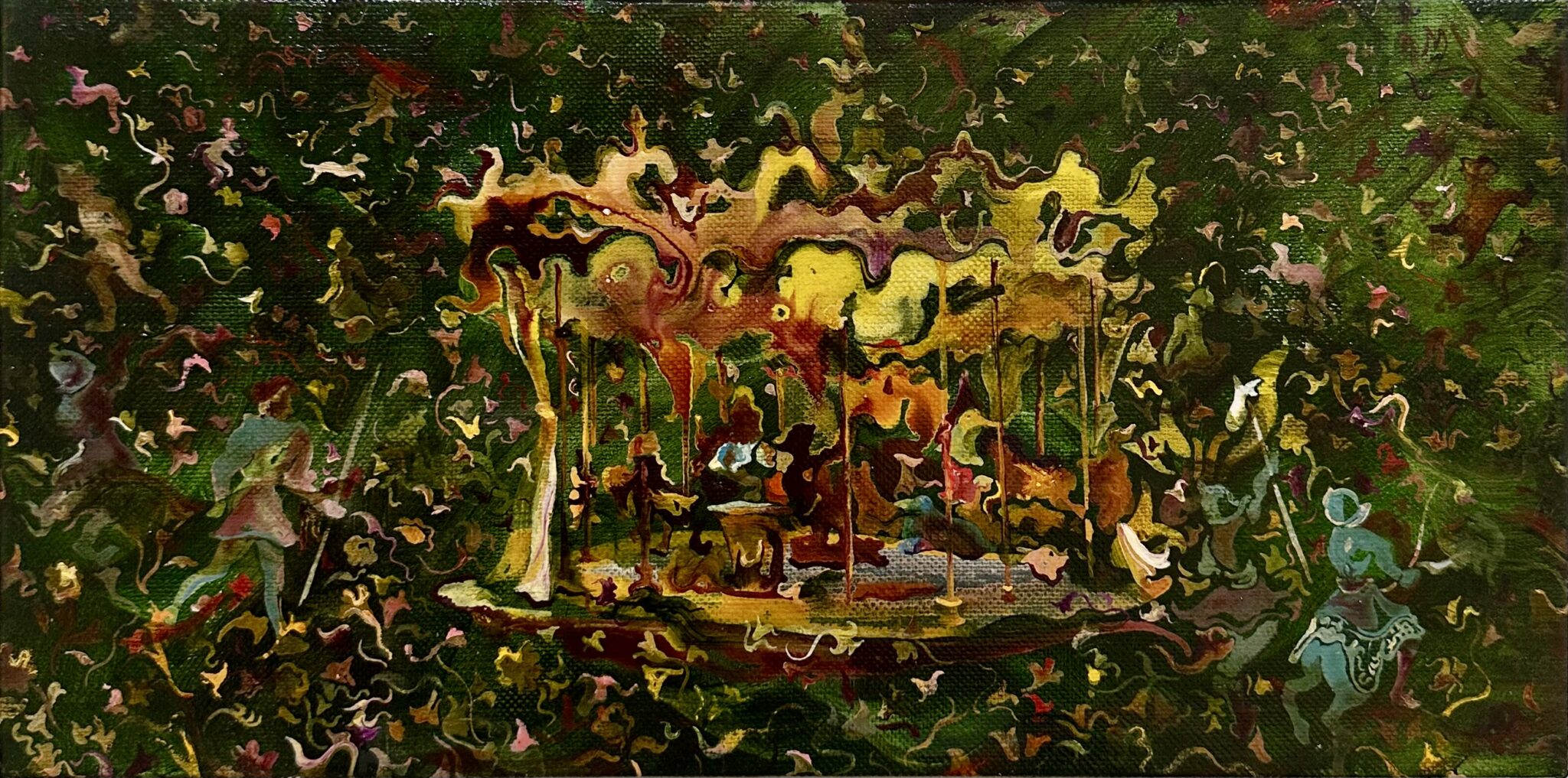 La mia ispirazione viene dalle sorgenti della foresta. L'acqua della fontana simboleggia la vitalità e il vigore della vita, l'armonia e la bellezza. La fontana e la foresta sono integrate, il che simboleggia l'eliminazione della schiavitù e dell'oppressione e l'armonia e la bellezza e contemporaneamente è un lavoro sperimentale di spunti e rielaborazione narrativa di forte impatto emozionale che cattura e attrae l'osservatore in un vortice brulicante di suggertioni coinvolgenti per riaffiorare in mondi e racconti individuali che si coagolano nelle personali evocazioni in intime atmosfere che avvolgono in cronache di una narnia fatta di simboli e archetipi che vibrano in reticoli universali.