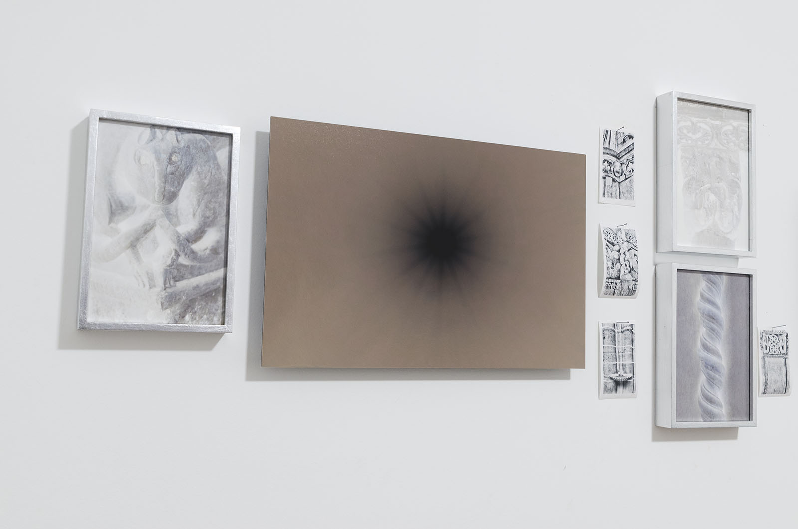 In questo progetto, il passaggio dal positivo al negativo diventa un atto immagi- nativo di rivelazione. L’uso della carta termica, fragile e destinata a dissolversi, riflette la precarietà dei significati e dei simboli che stanno svanendo sotto nuo- ve forme di caligine contemporanea: iper-connessione, narcisismo mediatico, perdita del sacro, estetica del vuoto.