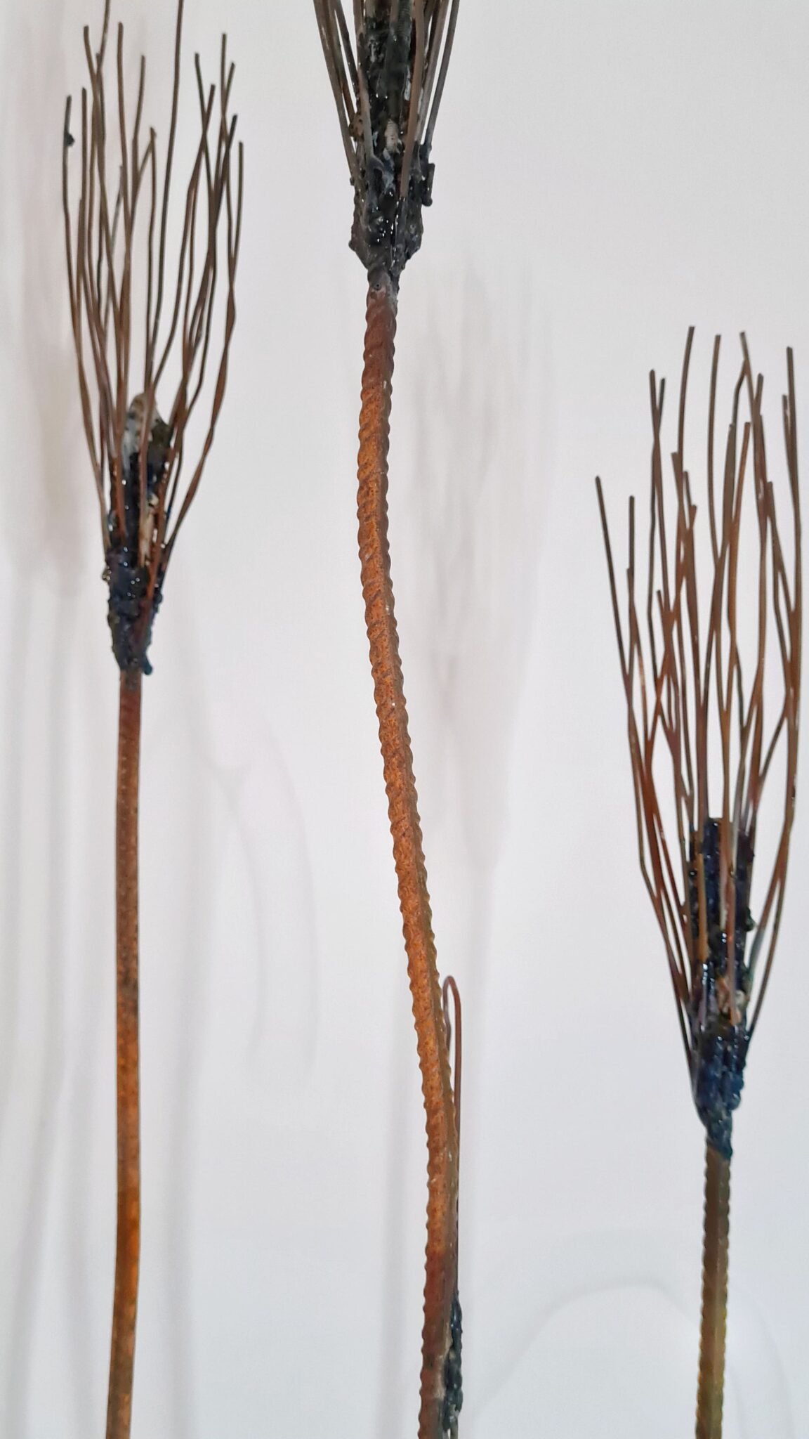 Ferro di scarto e lastra di porfido lavorati e saldati