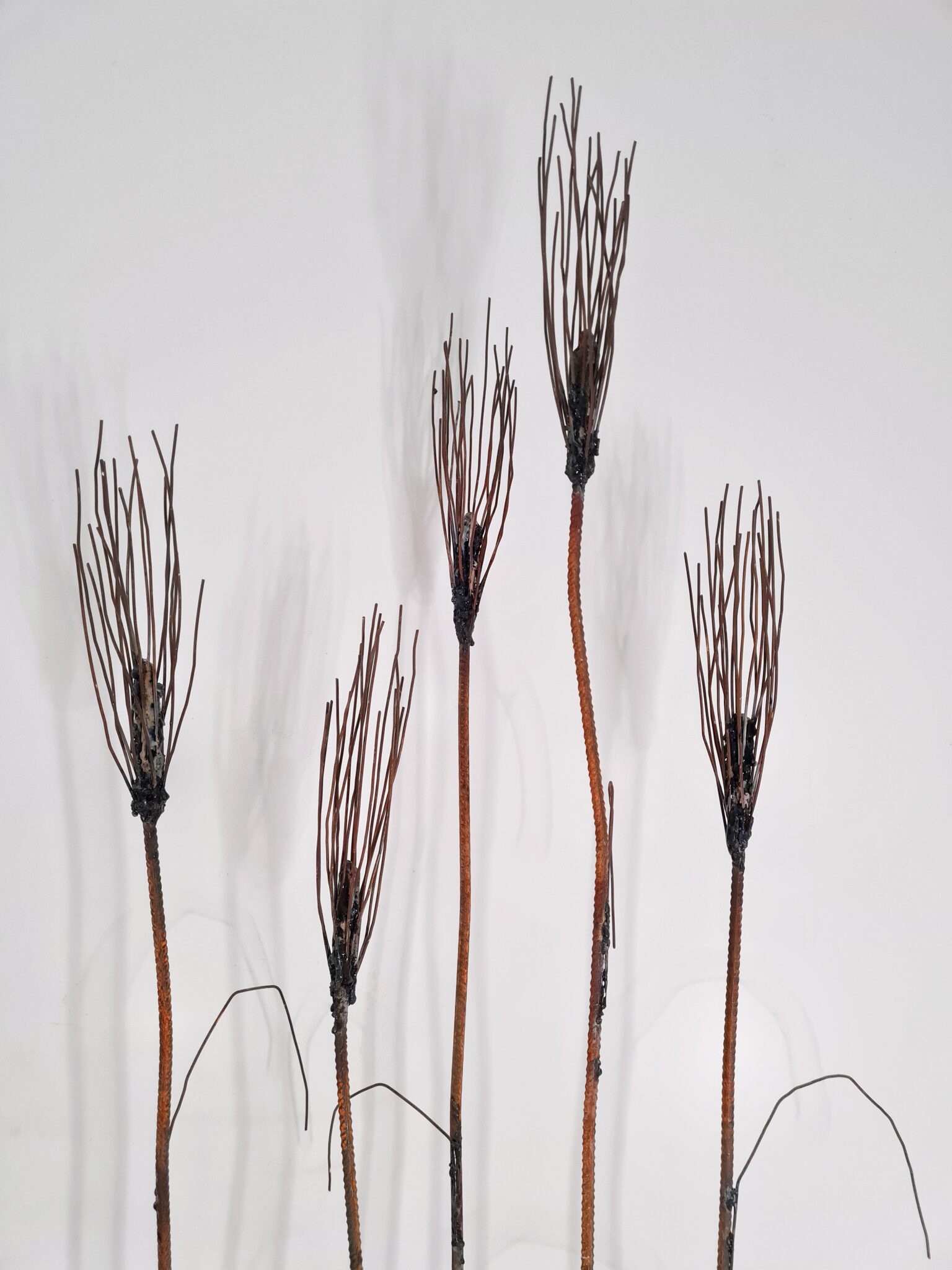 Riflessione sulle tematiche delle fragilità e del rapporto uomo-natura. Demetra; protettrice del grano e del raccolto. Materiali lavorati dall’uomo che partono da elementi naturali come la pietra. Spighe senza vita che nascono da un “terreno” arido, simbolo della crisi idrica. Suolo riarso, inadatto a creare vita vegetale, impreparato ad accogliere piogge copiose ed impetuose; sfogo di un ecosistema portato allo stremo dal logoramento umano.
