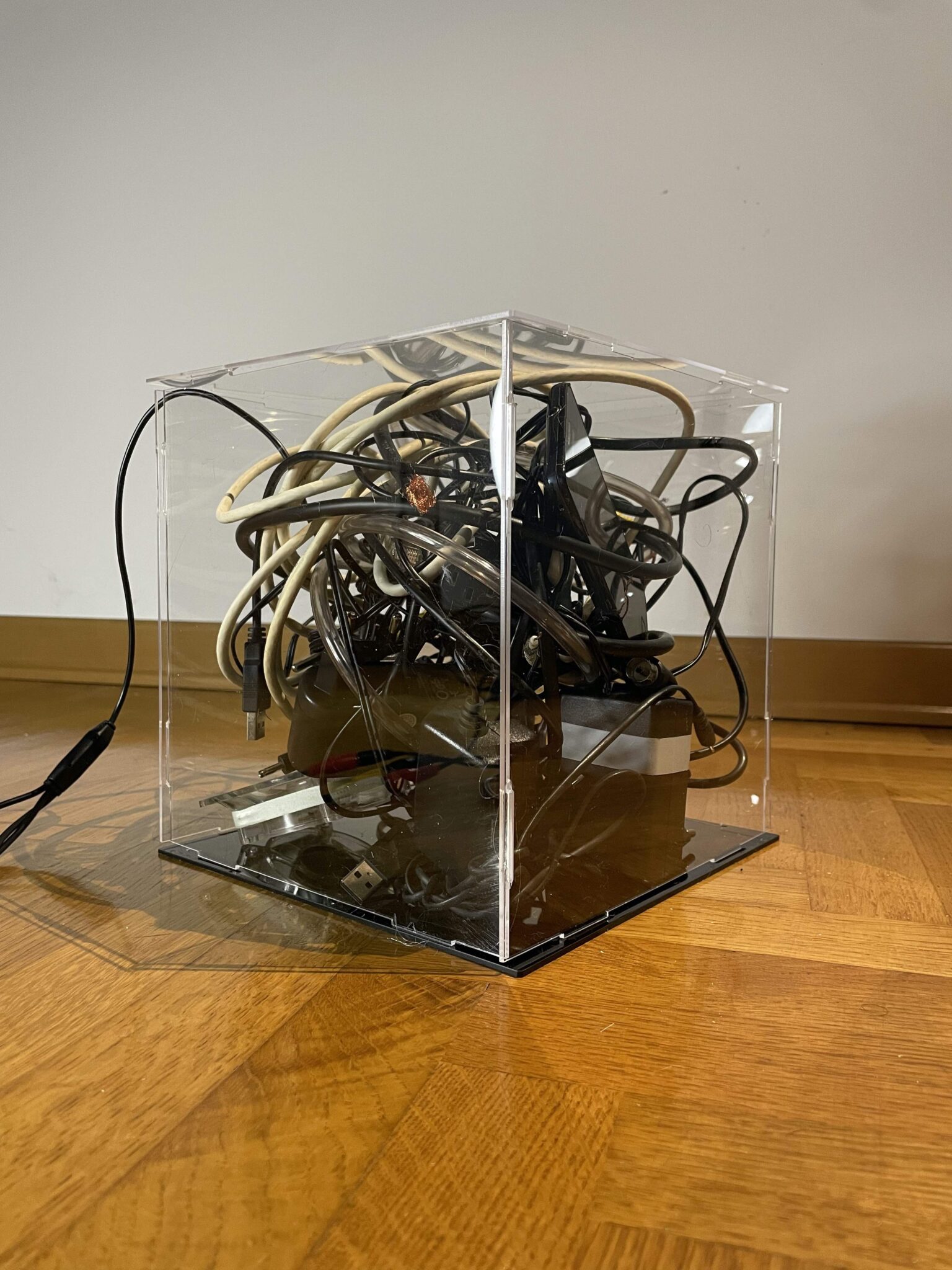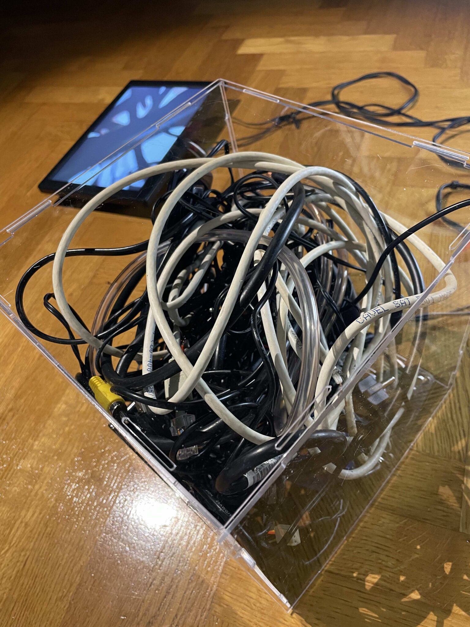 Le connessioni, i legami, che come questi cavi, si intrecciano, si consumano e vengono superati da nuovi paradigmi. Nel cuore di questa massa caotica, una nanocam trasmette in diretta il nucleo centrale, cercando di svelare cosa rimane, raccogliendo altre visioni e nuovi punti di vista.