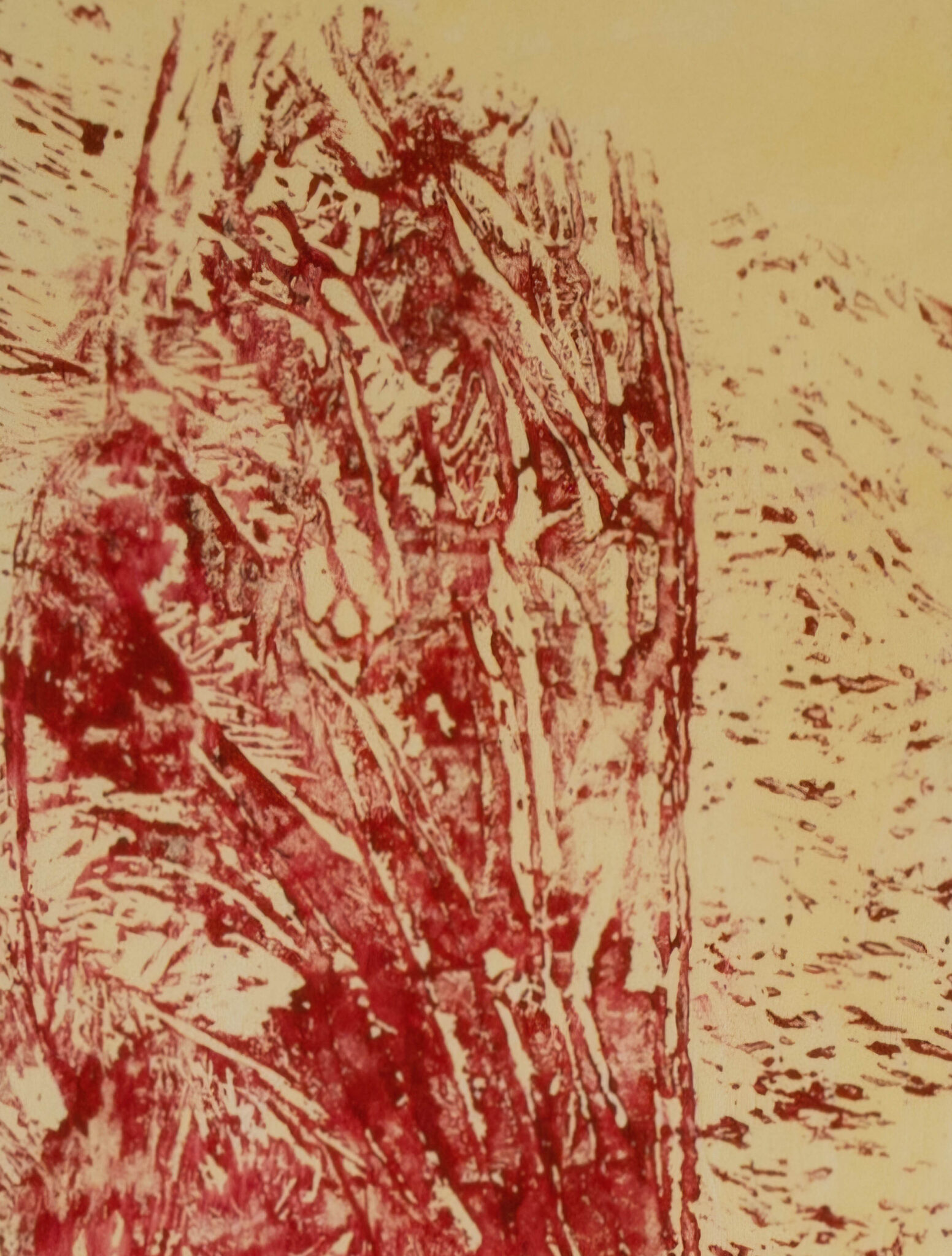 Attraverso le sue creazioni assapora lo scorrere del tempo, innanzitutto quello dedicato alla realizzazione della matrice - da lei definito una sorta di rituale - e di tutti quei tempi ad esso successivi interessati dall’inesauribile processo di stampa. In questo delicato passaggio dalla matrice alla stampa l’artista interviene sulle forme segmentando e in qualche modo distruggendo i lembi dell’immagine in favore di una visione meno accademica e maggiormente espressiva. Attraverso questa frammentazione delle figure - non c’è lavoro, escluse le matrici, che non risenta di questo processo - rende tanto irriconoscibili quanto enigmatiche le forme, disorientando lo spettatore e invitandolo a soffermarsi su quegli aspetti che, nella realtà, mai avrebbe considerato.
