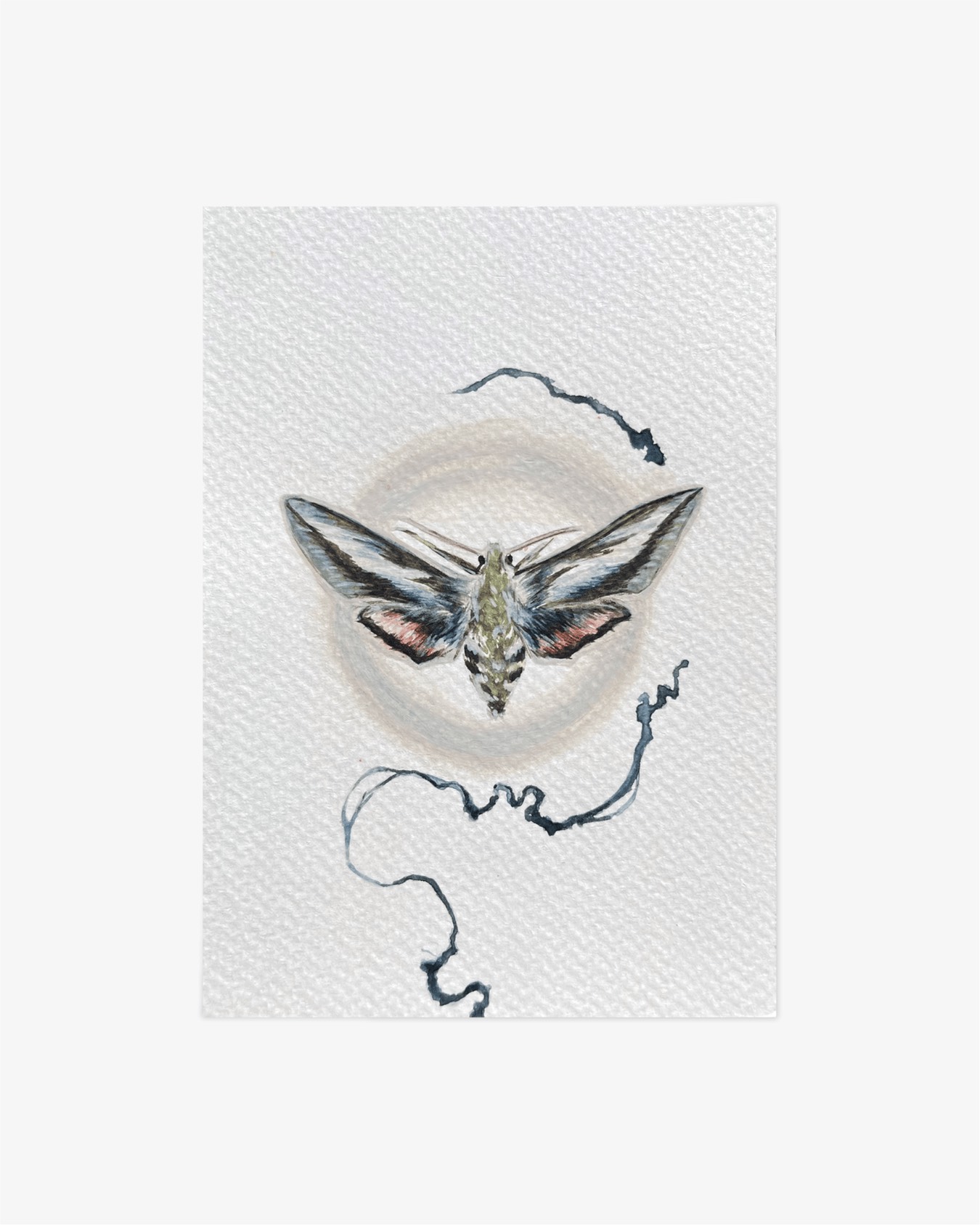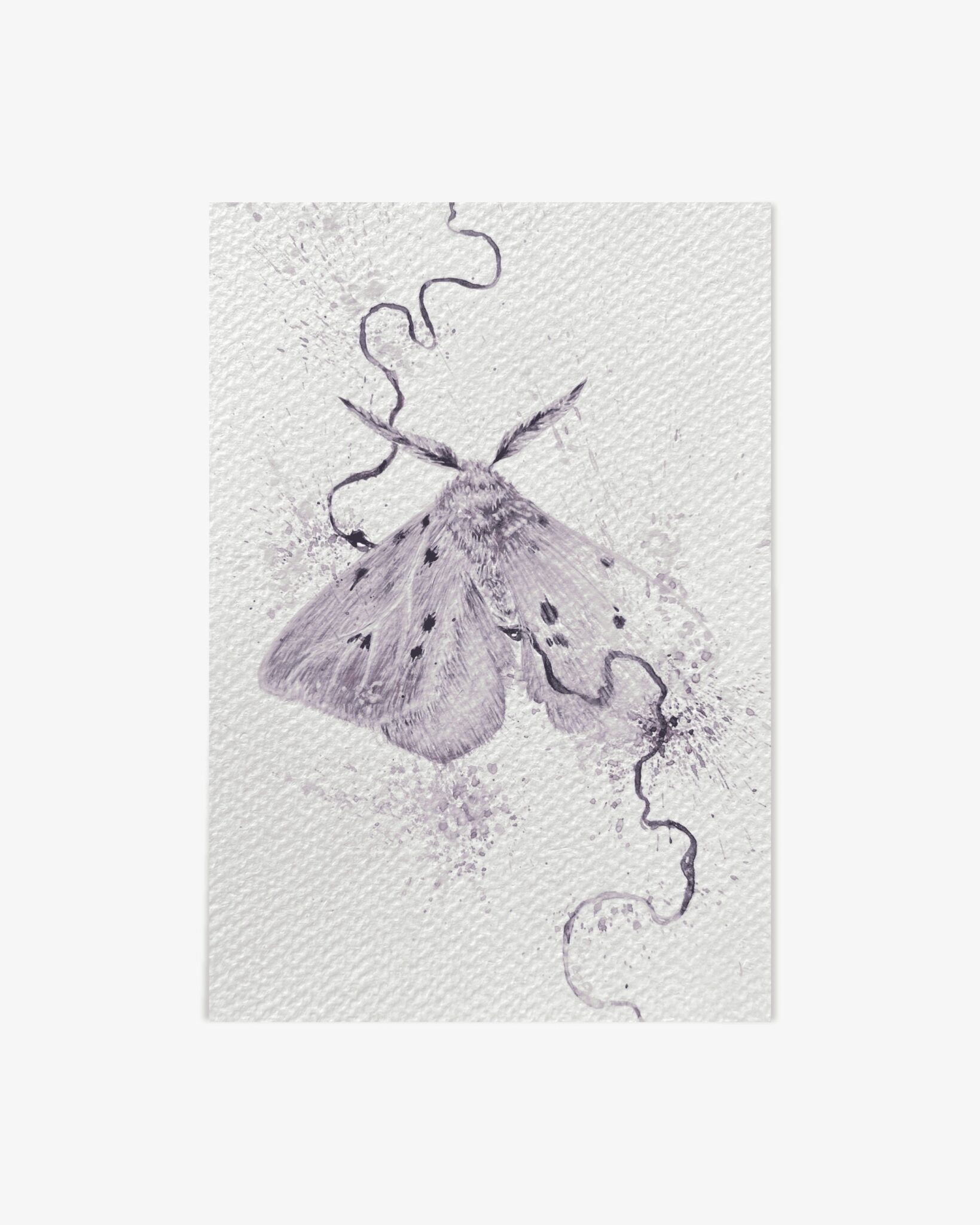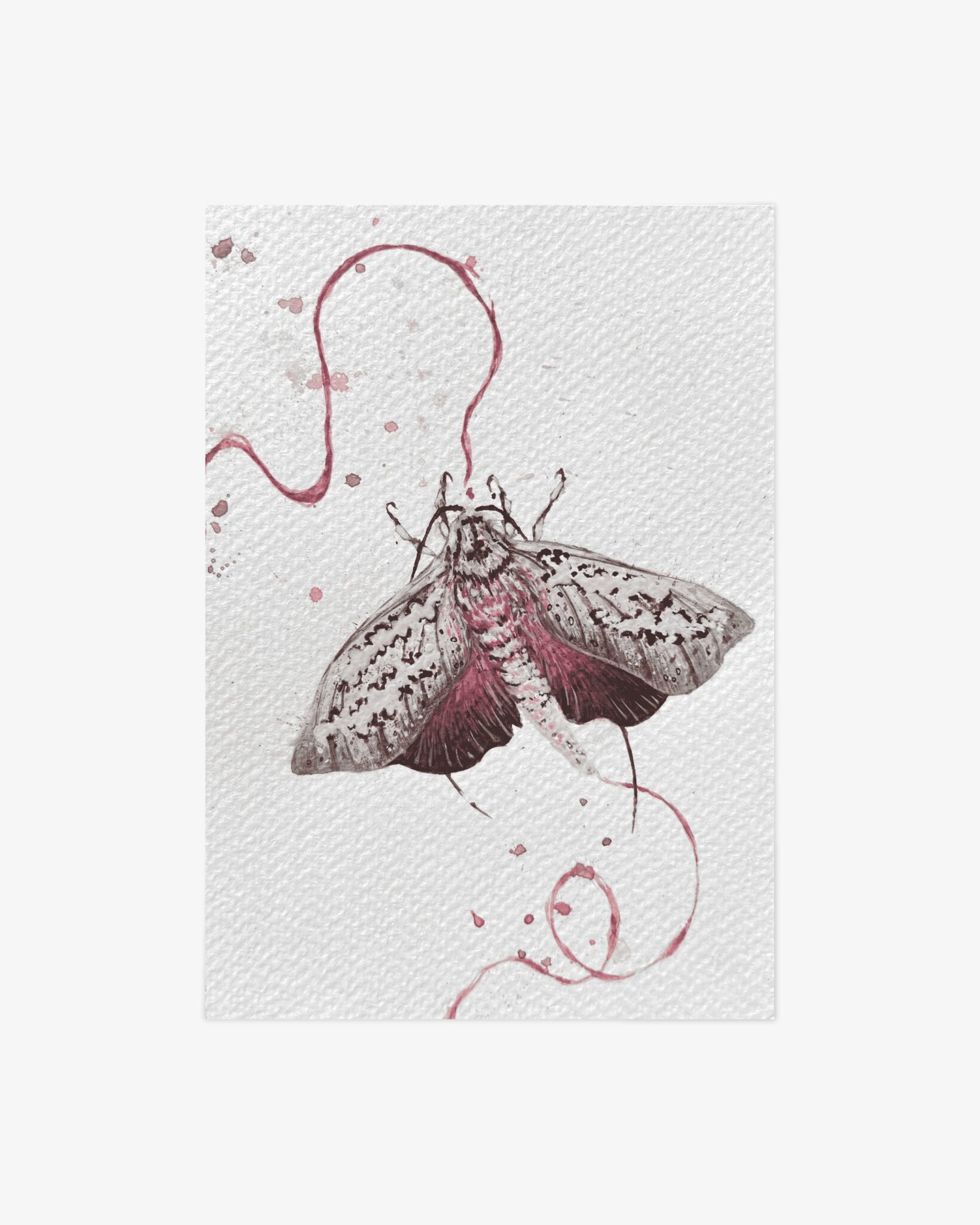Moth Series consiste nella mappatura di un organismo e del suo ambiente, o del suo mondo, entrambi sottoposti a significativi mutamenti. La struttura delle falene, archetipo del cambiamento, è solo un mezzo per rappresentare l'evoluzione dell’essere, consapevole che le cose sono molto più di quanto appaiano. All’interno della ricerca sono entrate, poco per volta, tematiche legate alla natura e al linguaggio. Il concetto di natura, visto come modalità di oggettivazione del mondo, è fondamentale ai fini della costruzione del rapporto fra l’arte e la natura umana che, alla luce della crisi ecologica, è più rilevante che mai. Nella ricerca il linguaggio contiene in sè una verità determinante, non serve solo a comunicarci le cose. In questo senso, il pensiero è una modalità di oggettivazione dell’organismo e di accesso al suo ambiente, o al suo mondo. Da sinistra a destra: Nightime (l’Equilibrista), Bloodline, Slaughter, Moon, Wounds, Nymph, Teardrop, Leech, Untie the knots (Viluppo), Stain, Runaway (Spill), h/arm/less, Ashes, Void, Bruise (Lividamente), Riot, Painless, Healing, Tapestry, Tumbling (l’Acrobata).