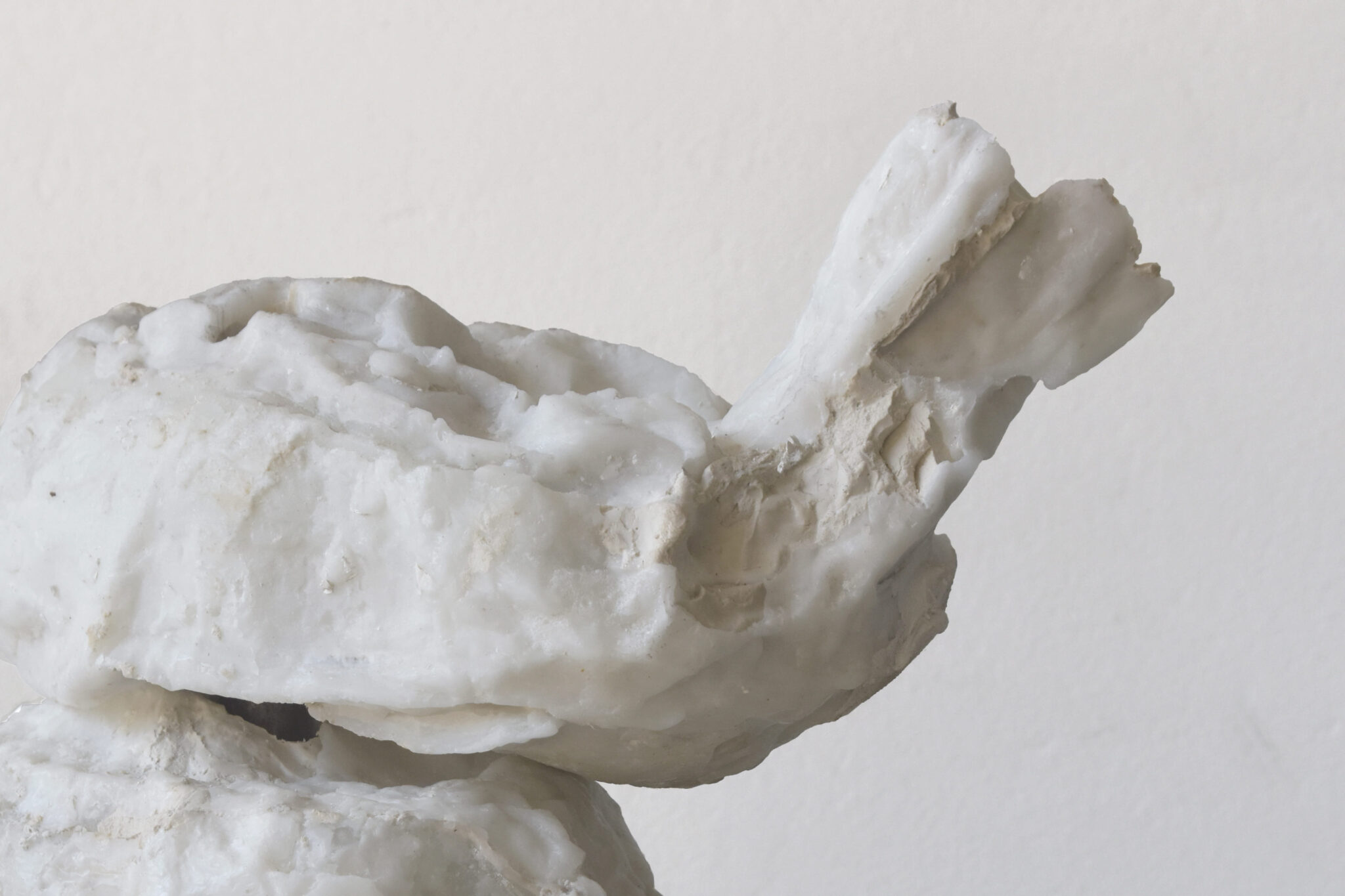 La scultura riflette, da una prospettiva diversa, il rapporto che l’essere umano contemporaneo intrattiene con il corpo animale, trasformato qui in strumento di vita che riecheggia memorie e tradizioni lontane, simulacro di rituali perduti e ritrovati, rinnovati attraverso forme di sostentamento quotidiano.