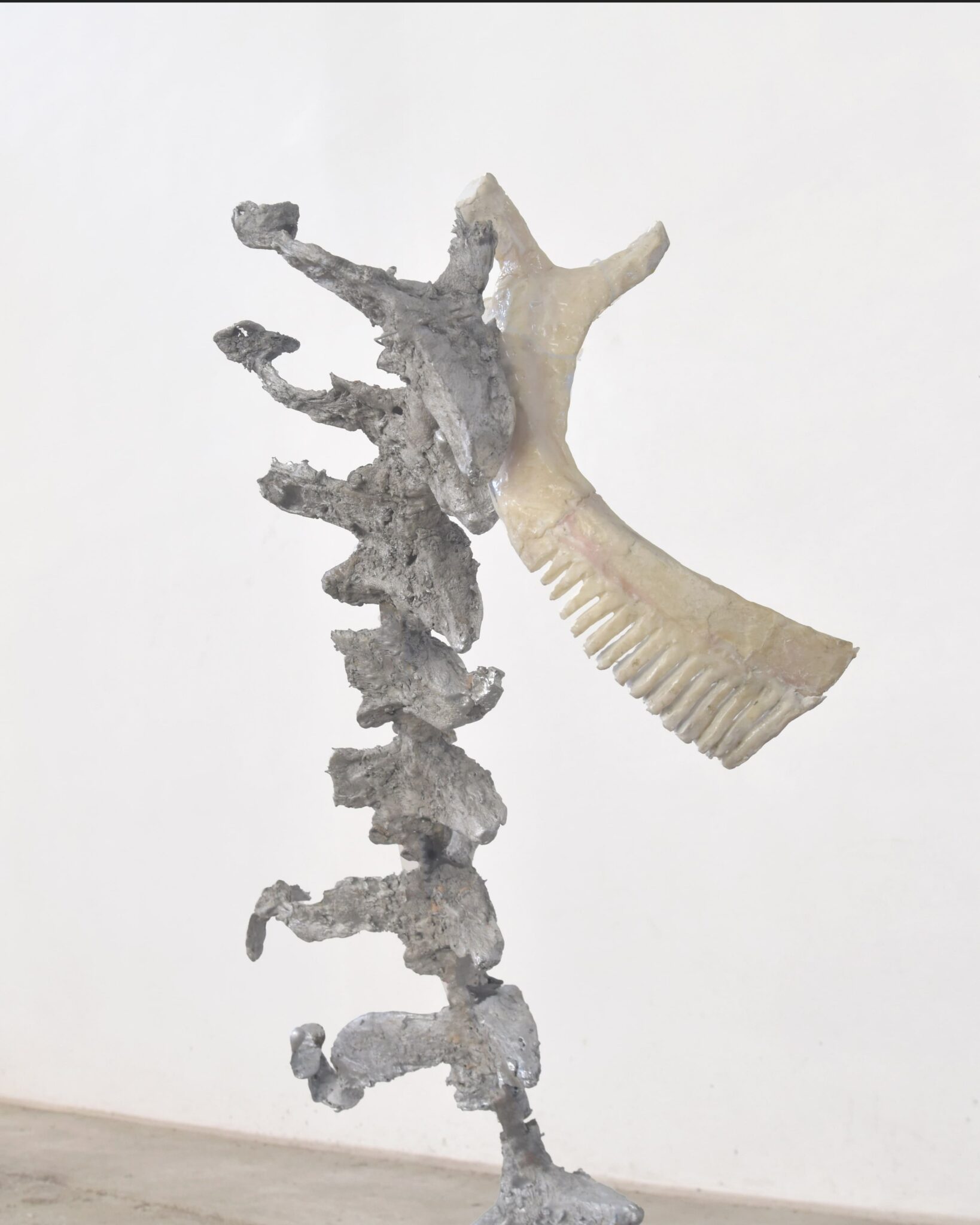 Appartenente alla serie scultorea Na sagra!, il lavoro è composto da un pettine il cui corpo è realizzato a partire da una costola di maiale e resina epossidica, incastonato ad un supporto di alluminio. Attraverso la pratica del lavoro manuale e artigianale, l'opera ripropone l’antico metodo di lavorazione degli scarti animali, ibridando elementi organici con strutture artificiali.