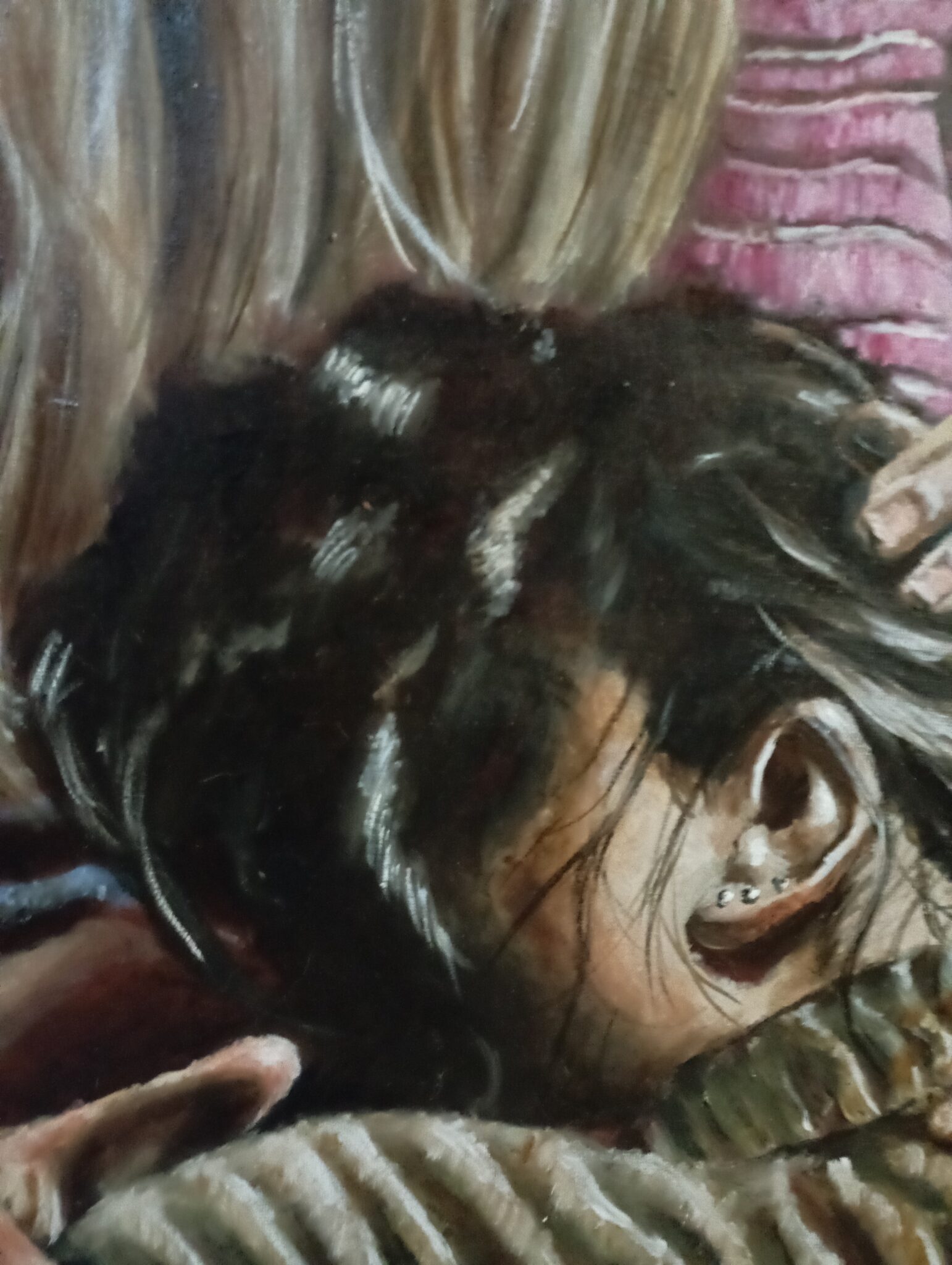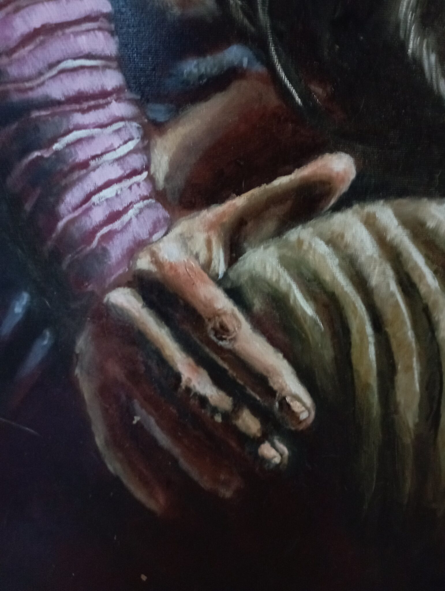 per la ragazza nelle sue ginocchia i colori sono più terrosi e duri