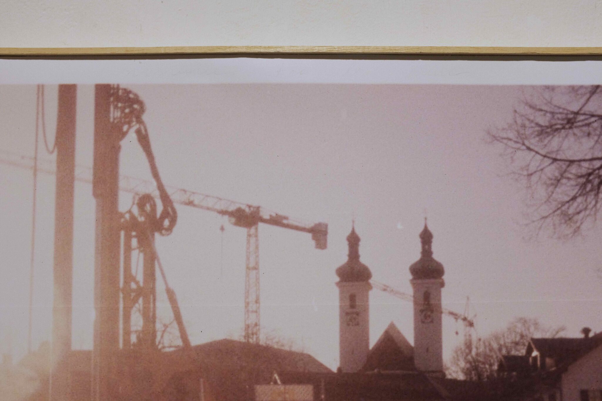 Risuona tra le mura raffigura un cantiere di una cittadina tedesca; transenne, rami, case, campanili e un grande riflesso della lente saturano l'inquadratura. Un nuovo edificio sta per essere costruito là dove un tempo ne esisteva un altro, di cui la memoria risuona ancora tra le mura abbattute. Risuona tra le mura riflette sulla tendenza tedesca di abbattere il passato per costruire ex novo, tendenza riflessa e messa in discussione dal titolo scritto a grafite e poi in parte cancellato nella banda bianca sulla parte superiore dell'immagine.