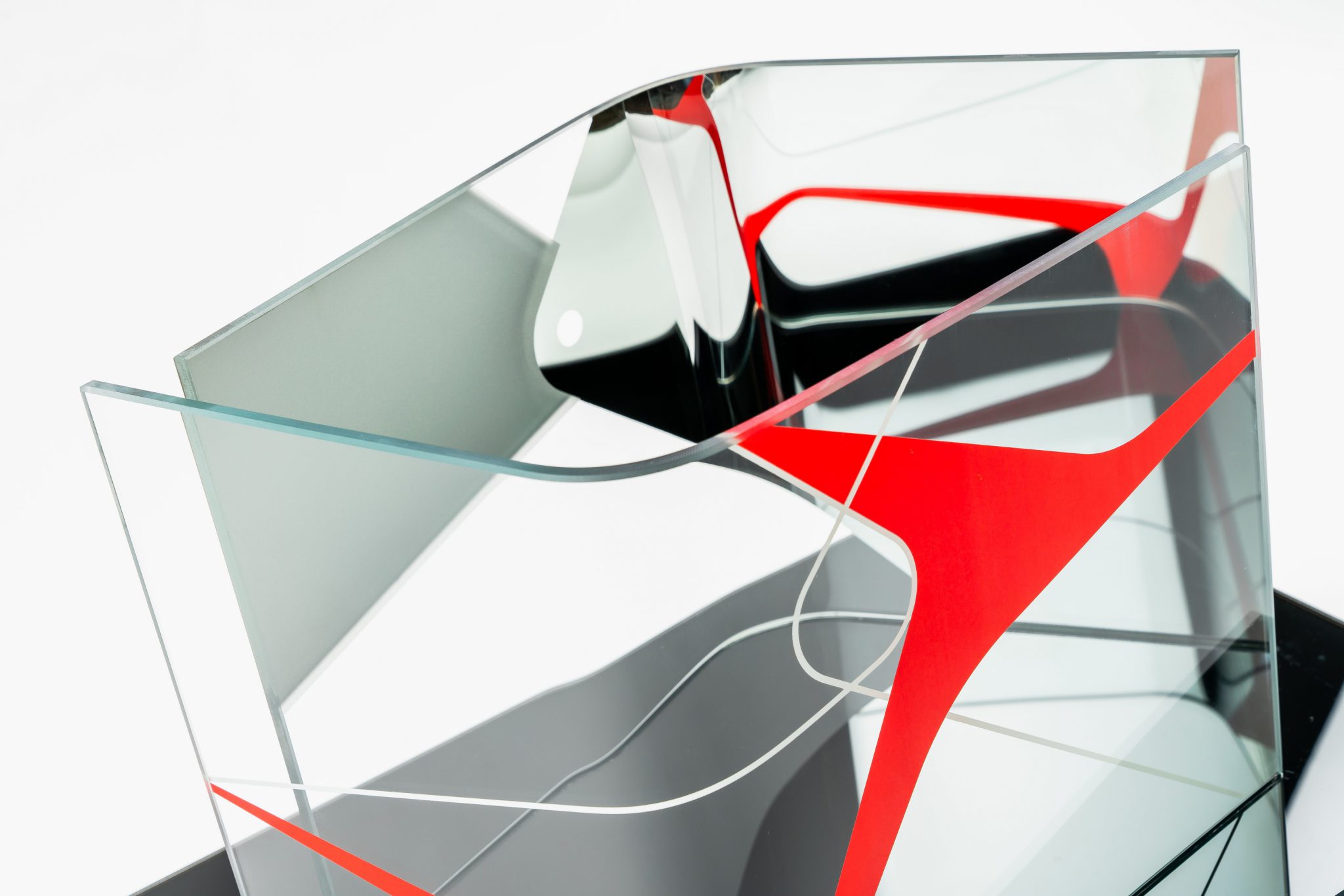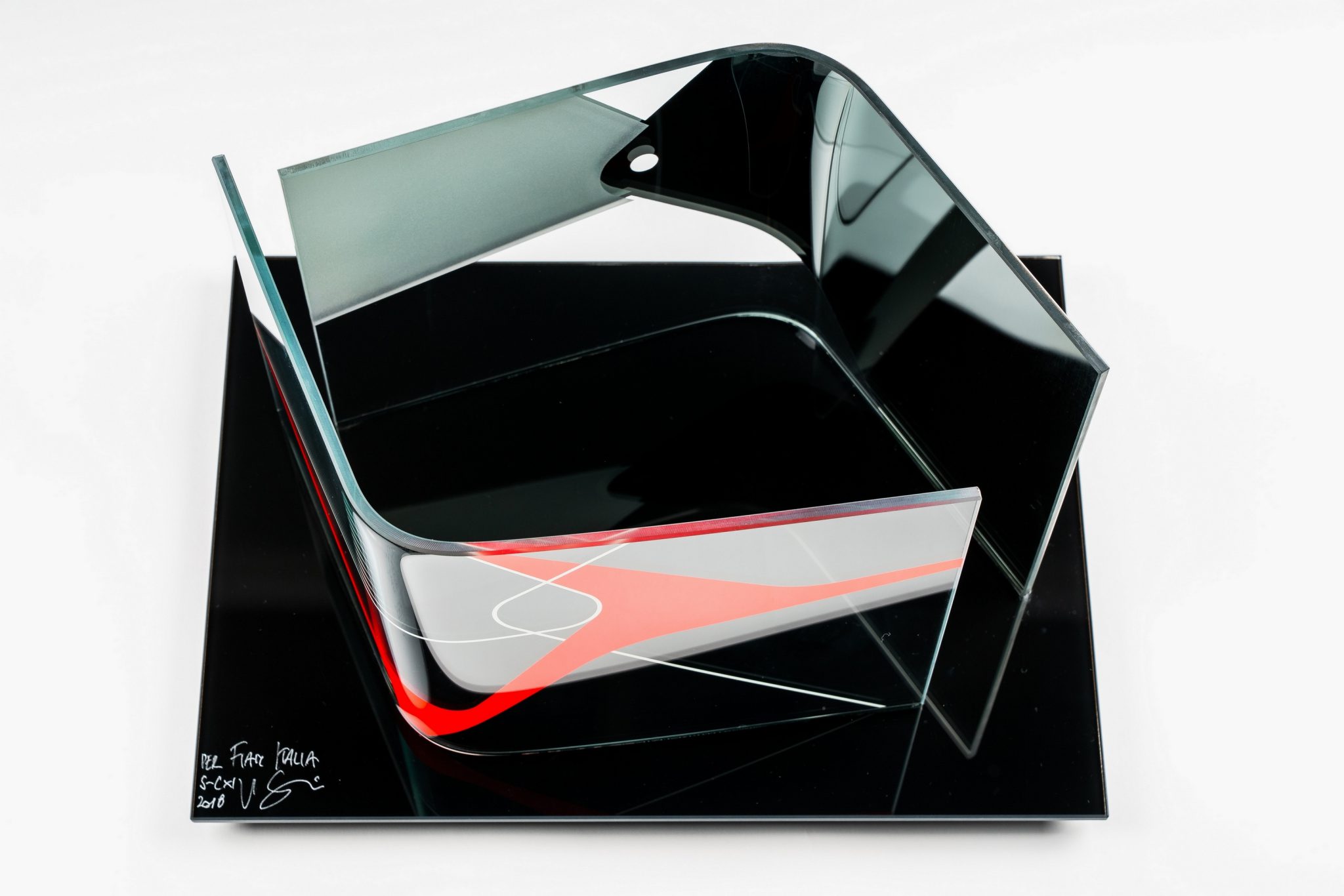 La Strutturazione CXI ha nel vetro curvato il suo punto di innesco, la sperimentazione continua grazie ai giochi di trasparenze e riflessi intrinseci in questo materiale. L'opera diventa quindi scultura a 360°, dove la luce penetra e indaga gli spazi, il colore accende e guida l'occhio nel gioco di bilanciamenti. Un'opera da vedere e leggere nel suo complesso, da ogni angolazione perché è concepita per esaltare ogni potenzialità del vetro e ogni aspetto della sua genesi scultorea. Lo spettatore entra in gioco scegliendo il punto di osservazione privilegiato, sempre differente, sempre unico.