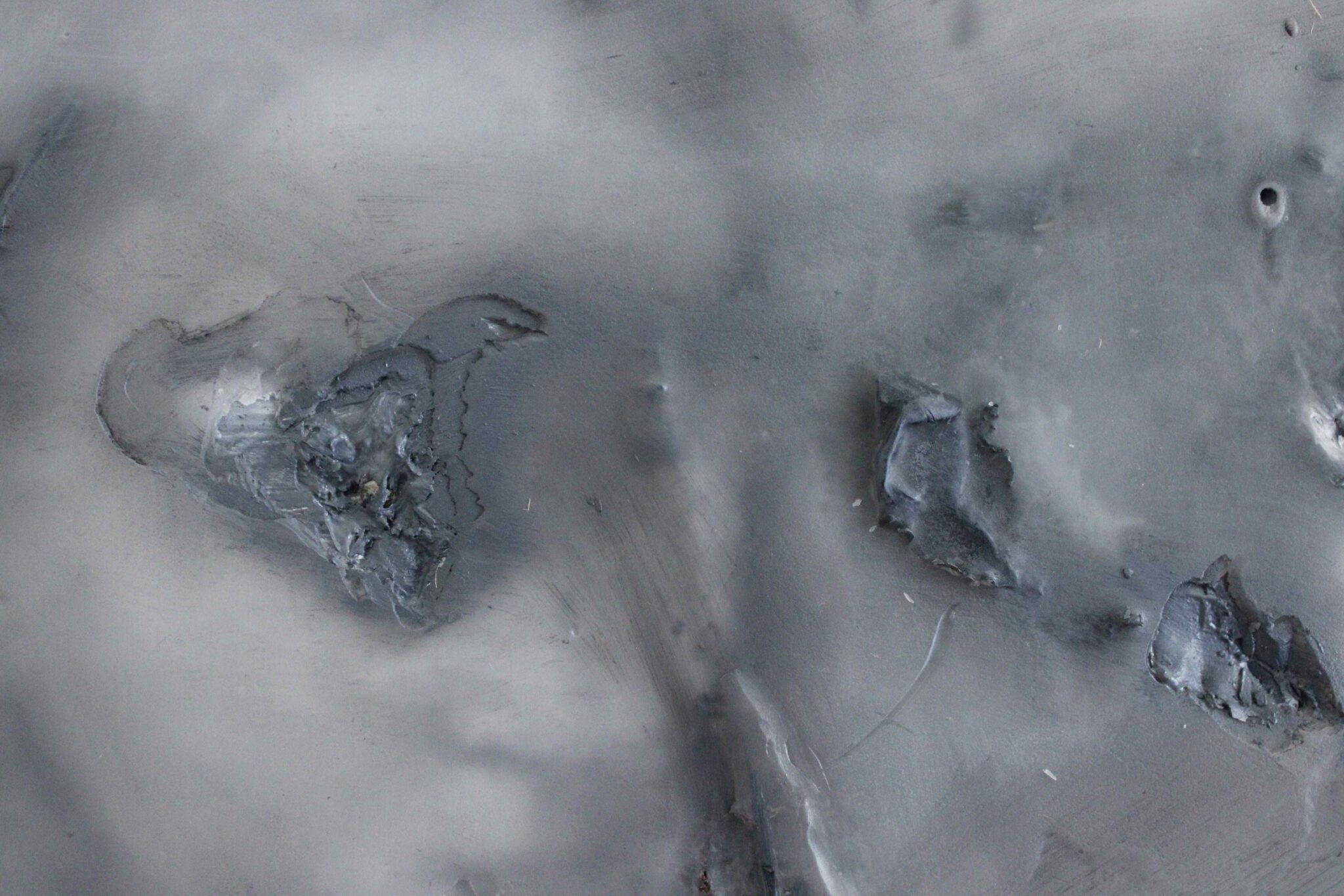 La serie di lavori Systemic Paintings è costituita da una stratificazione di materiali naturali e artificiali, che si legano liquidamente attraverso la pittura. L’immagine è il punto di partenza del processo pittorico, che vede un alternarsi di fasi di costruzione e decostruzione, mediante un’integrazione di elementi naturali come rami e foglie e oggetti plastici, metallici o rifiuti tecnologici. La densificazione delle immagini, immateriali, diviene in questo modo un tutt’uno con l’accumulo di rifiuti, carcasse, ossa, generando così un sistema liquido in trasformazione in cui la memoria e il tempo stesso sono al contempo materia sintetica e organica, fisica e virtuale.
