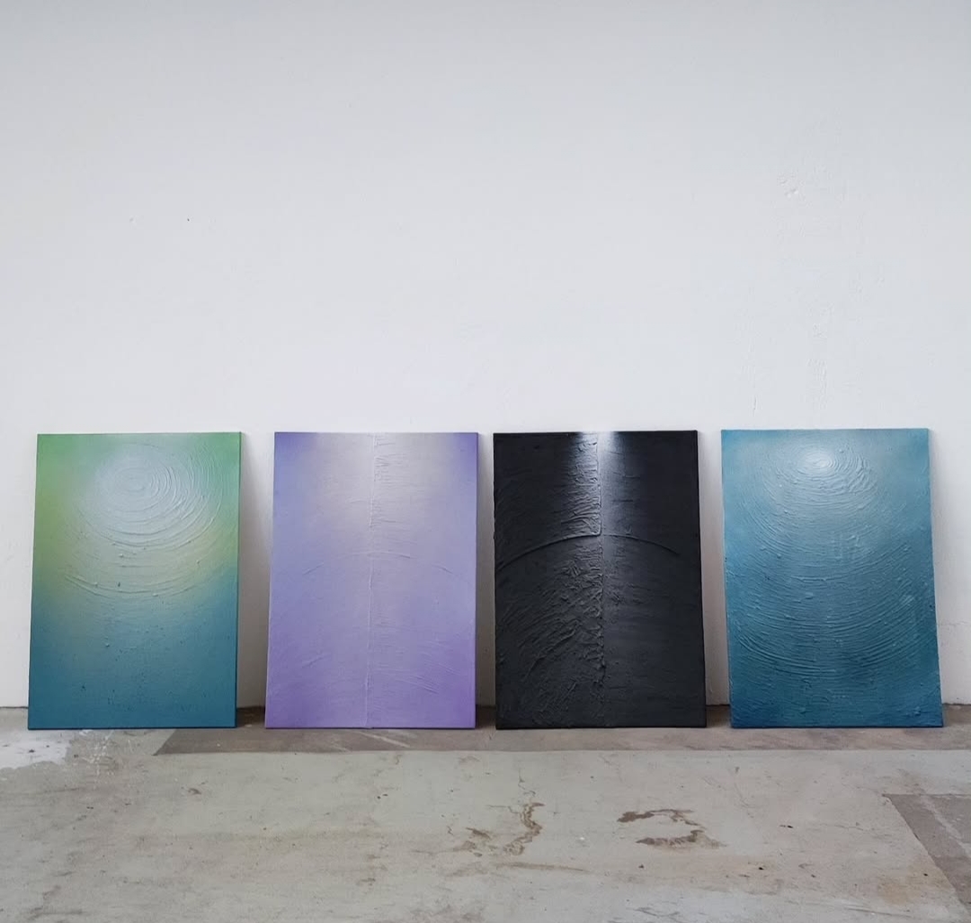 acrilici, stucco, sabbia, acrilici spray su tela, 2025