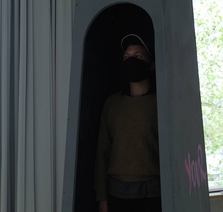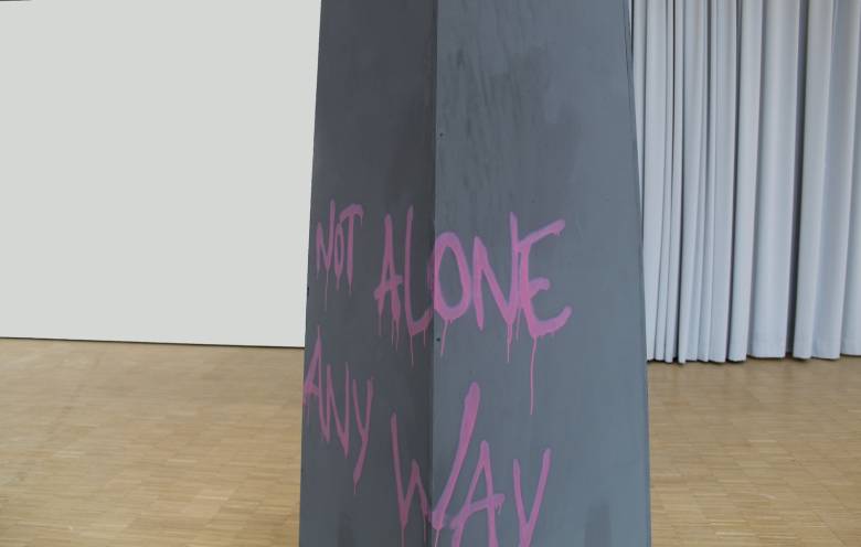 Installazione multimediale comprendente pannelli in legno, spray e acrilico su legno e suoni